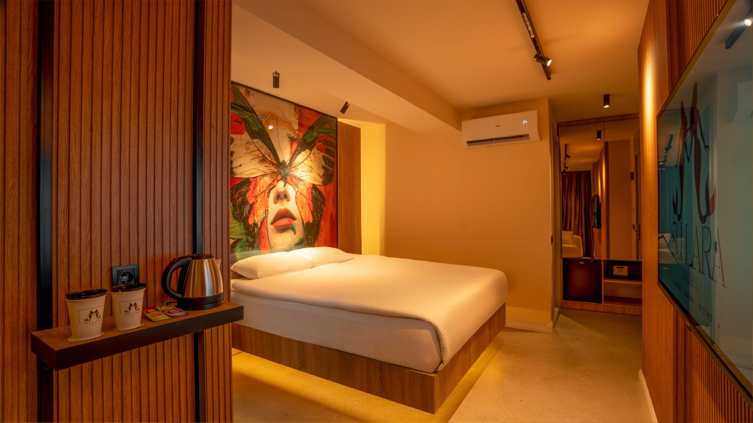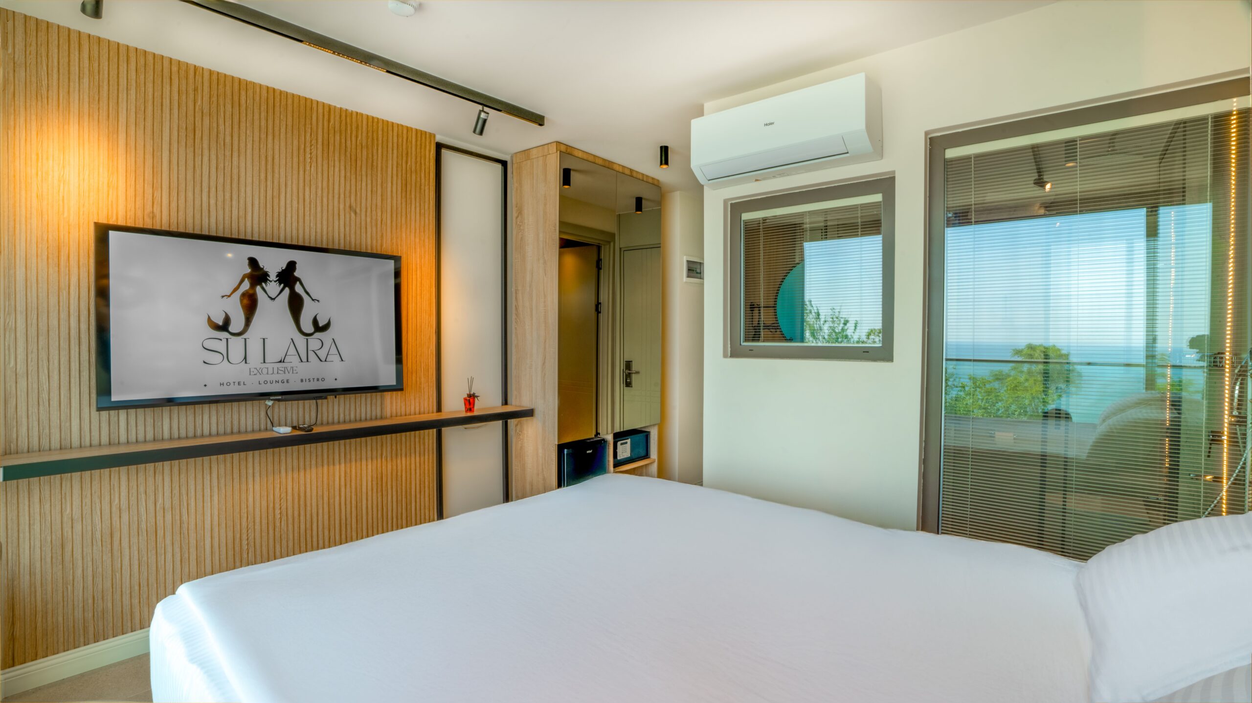 Sulara Exclusive Hotel’in Standart odaları, Antalya’nın kalbinde huzurlu ve konforlu bir konaklama arayan misafirlerimiz için özenle tasarlandı. Modern ve minimalist bir estetiğe sahip bu odalar, hem kısa süreli iş seyahatlerinizde verimliliğinizi artıracak bir çalışma ortamı sunar hem de şehri keşfettikten sonra dinlenmek için ideal bir sığınak görevi görür. Odamıza adım attığınız andan itibaren, sizi saran sıcak ve samimi atmosfer, günün yorgunluğunu üzerinizden atmanızı sağlar. Kaliteli tekstil ürünleri, ergonomik yataklar ve sessiz ortam, derin ve dinlendirici bir uyku çekmenizi garanti eder. Ayrıca, odalarımızda bulunan yüksek hızlı Wi-Fi erişimi, internet bağlantınızı kesintisiz sürdürmenize olanak tanırken, mini bar ve diğer modern olanaklar da konaklamanızı daha keyifli hale getirir. Antalya’nın hareketli yaşamına yakın konumumuz sayesinde hem şehrin cazibe merkezlerini kolayca keşfedebilir hem de otelimizin sakin atmosferinde dinlenebilirsiniz. Sulara Standart odalar, butik hizmet anlayışımızın ve misafir memnuniyetine verdiğimiz önemin en güzel yansımasıdır.